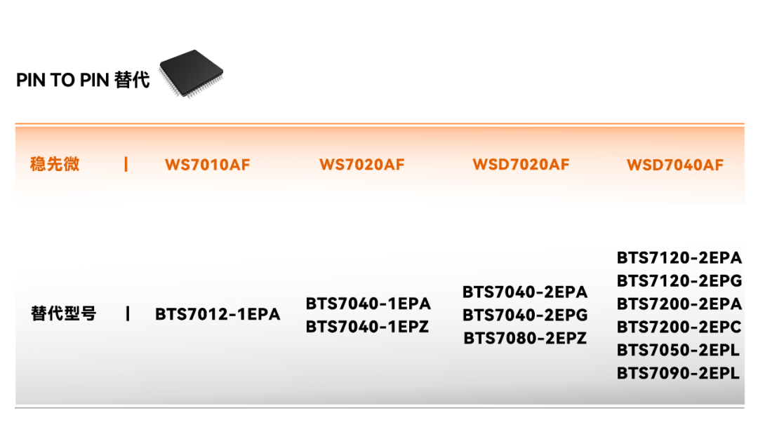 新產(chǎn)品采用單芯片設(shè)計,具有高可靠、高性能、高穩(wěn)定的產(chǎn)品特性并適用于12V汽車平臺。與WS7xxxAD系列不同之處是WS7xxxAF采用了DFN5×6-14L封裝,擴(kuò)大了該系列產(chǎn)品的兼容廣度,獲得了與會觀眾的廣泛關(guān)注和熱烈反響。